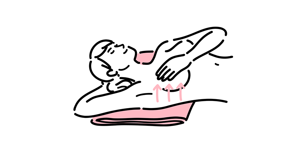 ②乳房や脇の下を指の腹で軽く押しながら触れます。