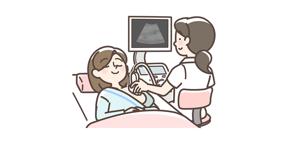 検査する部位に超音波を当てて跳ね返ってくる反響を画像にします。いわゆるエコー検査です。超音波はX線の代わりに音を使用している検査であるため、放射線被曝の心配はありません。40歳未満の乳腺が発達していて乳腺の密度が濃い女性でも、しこりを見つけやすい検査です。しかし、初期がんの症状である微細な石灰化を見つけることが難しいとされています。