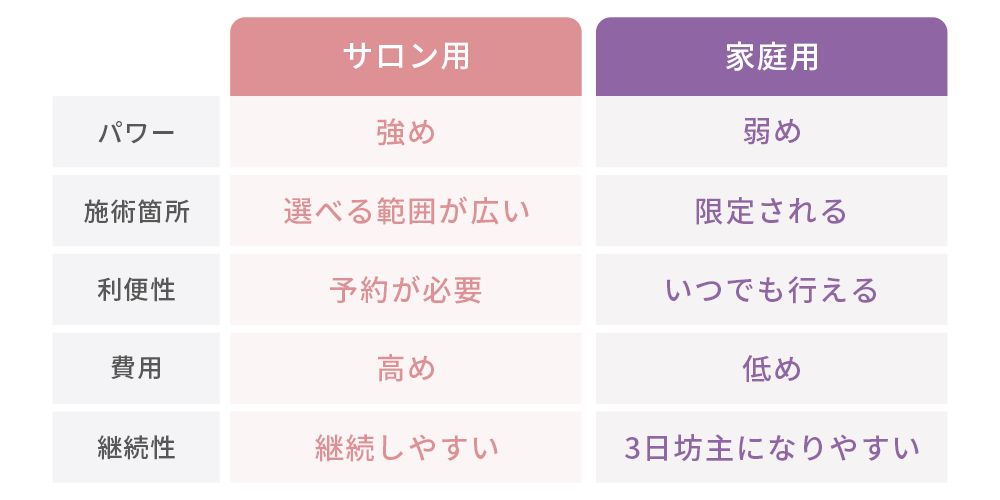 なぜなら、サロンには知識や技術を持った人材がいるため、周波数や出力の高い機械を使用することができるためです。