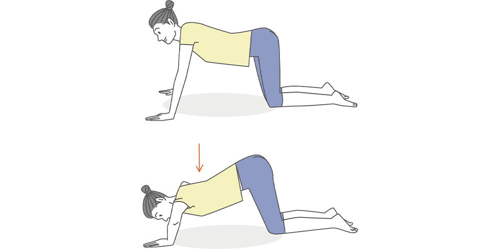 - 四つ這いになり、両手がある部分に肘を置く。